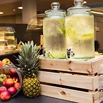 Smart gestaltetes Hotel, sehr praktische und komfortable Zimmer, das Personal war tüchtig. Es gab bequeme Betten und einen elektronischen Kartenschlüssel, ein Radio und einen Schreibtisch. Das Frühstück war mega lecker, es gab verschiedene preiswerte Speisen. Unglaubliche Lage, in einer ruhigen Gegend, in der Nähe von einem Museum und einem Schloss, es war definitiv ein Plus für mich. Zum Gluck habe ich gute Restaurant Restaurant Justers nahe beim Hotel gefunden. Und hab dort gefrühstückt.
